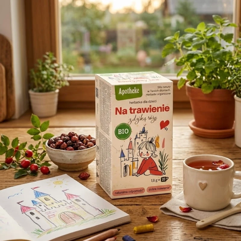 Apotheke Herbatka Dla Dzieci Na Trawienie BIO 20x1,8 g to wysokiej jakości kompozycja ziół pochodzących z certyfikowanych upraw ekologicznych. Marka Apotheke stworzyła tę mieszankę z myślą o potrzebach najmłodszych, dbając o łagodny profil smakowy i najwyższą czystość składników. Napar charakteryzuje się delikatnym aromatem, który jest chętnie akceptowany przez dzieci, stanowiąc doskonałe uzupełnienie codziennego jadłospisu. Produkt jest wolny od sztucznych dodatków, aromatów i konserwantów, co potwierdza europejski certyfikat rolnictwa ekologicznego. Wybierając opakowanie zawierające 20 saszetek po 1,8 g każda, zyskują Państwo praktyczny i szybki sposób na przygotowanie wartościowego napoju ziołowego dla swojej pociechy o każdej porze dnia.