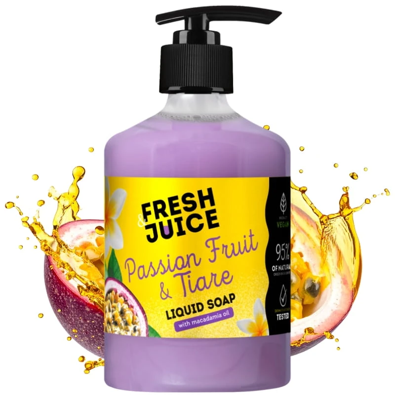 Poczuj lekkość z płynnym mydłem Passion Fruit & Tiare od Fresh Juice.
