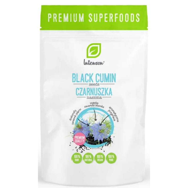 Intenson Czarnuszka nasiona to wysokiej jakości produkt naturalny, składający się ze starannie wyselekcjonowanych całych ziaren czarnuszki siewnej. Nasiona charakteryzują się intensywnym, lekko ostrym smakiem oraz charakterystycznym korzennym aromatem, który doskonale wzbogaca różnorodne potrawy. Produkt posiada czysty skład, bez żadnych sztucznych dodatków czy konserwantów. Czarnuszka marki Intenson świetnie sprawdza się jako posypka do domowego pieczywa, dodatek do twarogów, sałatek, a także składnik marynat do mięs i warzyw. To idealny wybór dla osób poszukujących naturalnych przypraw o wyrazistym profilu, które w prosty sposób pozwalają urozmaicić codzienny jadłospis i nadać daniom wyjątkowego charakteru.
